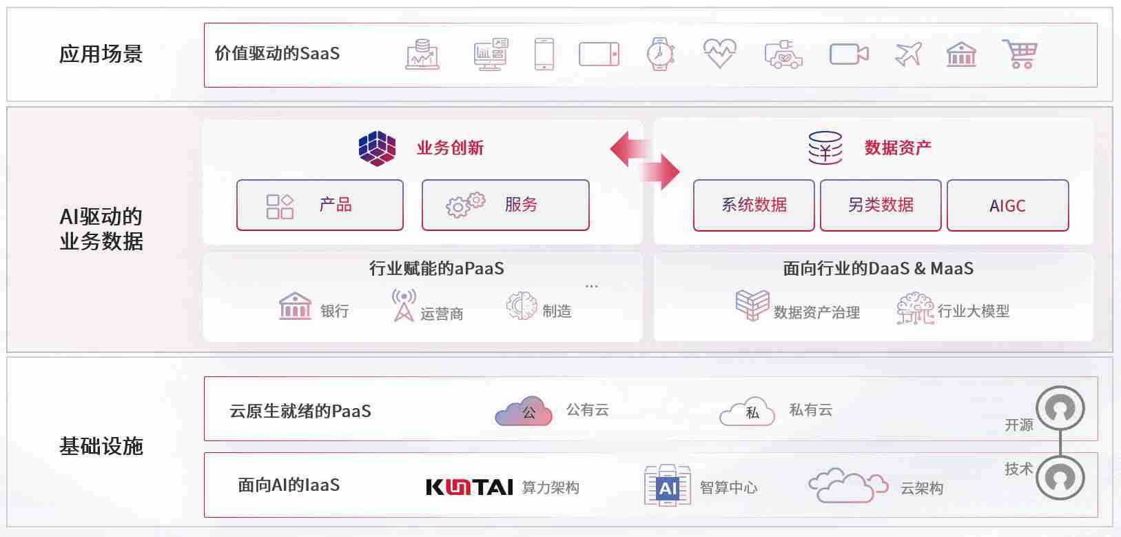 数字时代,,,,围绕企业数字化转型的关键要素,,KOO钱包数码开创性的提出数云融合战略和技术体系框架,,,,着力在云原生、、、、数字原生、、、、AI原生和信创产业上架构产品和服务能力,,为处在不同数字化转型阶段的快消零售、、、汽车、、、金融、、、医疗、、、政企、、、教育、、、、运营商等行业客户提供泛在的敏捷IT能力和融合的数据驱动能力,,,,构建跨界融合创新的数字业务场景和新业务模式,,助力企业级客户建立面向未来的核心能力和竞争优势,,全面推动社会的数字化、、智能化转型升级。。。。